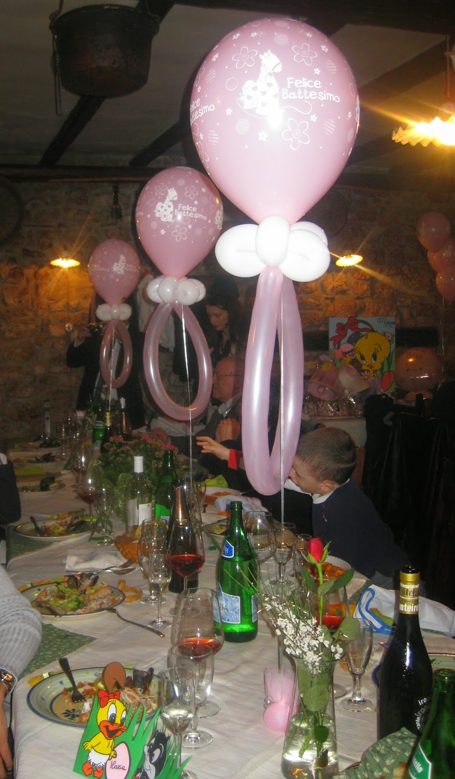 Sulla tavola sono stati posizionati anche tre palloncini rosa forma di ciuccio, gonfiati ad elio.